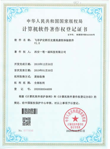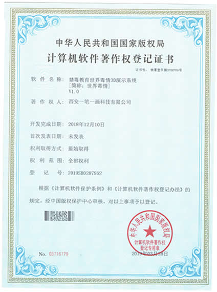 西安一筆一畫科技有限公司擁有《3C管理體系認證》|《3A信用等級》|《展館雙甲資質》《招投標證件》|《展覽業(yè)10大影響力品牌》|《環(huán)藝雙甲資質》|《禁毒教育拒毒心理測試系統(tǒng)軟著》|《飛奪瀘定橋歷史重現虛擬體驗軟件軟著》|《禁毒教育世界毒情3D演示系統(tǒng)軟著》等等,是您可以信賴的展廳教育基地設計施工企業(yè)!